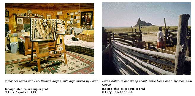 Photographer Lucy Capehart, a museum educator and curator, is known for her wide-open color landscapes, domestic interiors, and for being responsive to the people and subjects she is photographing. Her images show us the importance of sheep to Navajo life and traditions through photographs of Churro, fresh mutton for sale, and beautifully woven traditional rugs. DBI leader Sarah Natani is seen in her sheep corral and her rugs are shown in her hogan.