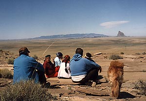 Note lenticular cloud above Shiprock in the distance.