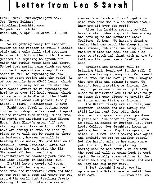 <> Letters from Leo and Sarah <>