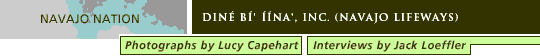 Photographer Lucy Capehart, a museum educator and curator, is known for her wide-open color landscapes, domestic interiors, and for being responsive to the people and subjects she is photographing. Her images show us the importance of sheep to Navajo life and traditions through photographs of Churro, fresh mutton for sale, and beautifully woven traditional rugs. DBI leader Sarah Natani is seen in her sheep corral and her rugs are shown in her hogan. |